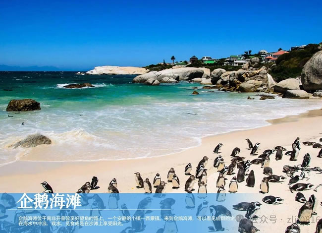 【企鵝海灘】走在木板搭建的長(zhǎng)廊上,深入到企鵝們棲息的海灘,近距離地觀(guān)賞企鵝。成群的企鵝在海灘邊上的海水中沖浪、戲水、覓食或是在沙灘上享受陽(yáng)光。