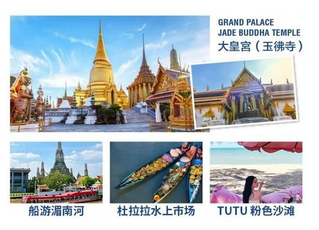 1.【大皇宮 +玉佛寺】早餐后,前往泰國(guó)標(biāo)志建筑【大皇宮】,是泰國(guó)歷代王宮保存最完美、規(guī)模最大、最有民族特色的王官,被稱為“泰國(guó)藝術(shù)大全 ” ,與大皇宮相鄰,是全泰國(guó)唯一沒(méi)有僧侶住持的佛寺,供奉著一座價(jià)值連城的國(guó)寶---玉佛 ,是泰國(guó)的三大國(guó)寶之一。2.【長(zhǎng)尾船游湄南河】乘坐泰國(guó)獨(dú)有的長(zhǎng)尾船,暢游在湄南河中。既可以欣賞水上人家又可以放松心情,又可以欣賞到曼谷獨(dú)有的湄南河景色、鄭王廟 。河岸兩邊的景色和風(fēng)光一定會(huì)給您帶來(lái)不一樣的體驗(yàn)。3. 【廊1919】曼谷新晉潮人打卡低,是由必沙布家族里的高官波山舒巴本先生 1850 年型建的 。那時(shí)是火船運(yùn)輸最 鼎盛的時(shí)期,船只往來(lái)川流不息?;鸫瘸俗鳛榇a頭之外,還建有一座媽祖廟,以便出海的船員和附近的居民祭拜。1900 年期間,這里逐漸改為辦公室、住家和倉(cāng)庫(kù)。員工宿舍在樓上,樓下則為辦公室 。在這期間,這里也曾作為中 國(guó)商人協(xié)會(huì)的中心,對(duì)華人商業(yè)發(fā)展起了積極的推動(dòng)作用。4.【國(guó)際人妖秀】 (游覽時(shí)間不少于 60 分鐘) ,欣賞佳麗名媛們傾情奉獻(xiàn)給大家 的精湛演繹,陶醉于紅袖飄舞、婀娜 多姿、千嬌百媚的藝術(shù)神韻而會(huì)感嘆她們的百變神奇。溫馨提示 : 參觀大皇宮玉佛寺時(shí)男士須穿長(zhǎng)褲,女士需穿過(guò)膝長(zhǎng)裙,女士不可穿露背、吊帶上衣及超短裙。