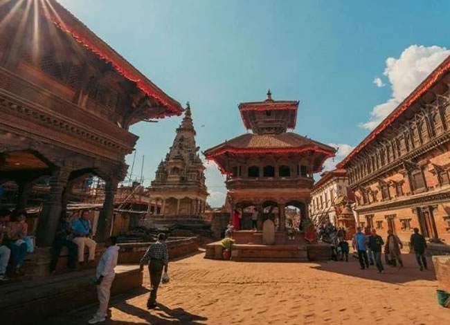 早餐后前往帕坦杜巴廣場,廣場呈長方形,東邊是皇宮,塔萊珠女神廟、金廟、曼嘉噴水池等,西 邊則是造型各異的廟宇,其中最為著名的是黑天神廟、黑天寺、哈里??ㄉ駨R、毗濕奴神廟、 毗斯瓦納特神廟等。其建筑藝術(shù)也非常高超、精湛,在世界建筑史上占有一席之地,被稱為 "露天的博物館"。游覽始建于 2000 多年前的世界上最輝煌的佛教寺廟“斯旺那布廟”(Swayambhunath 世界文化遺產(chǎn),俗稱“猴山”) 【約 1.5 小時】,來這里祭祀 的有尼佤爾尼姑、藏族喇嘛、佛教及印度教之貴族朝圣者,也許斯旺那布塔是觀察尼泊爾各個宗教融洽相 處的最佳地方。整體建筑古樸,味道十分濃郁,民房的窗飾極其繁復(fù),寺廟建筑的細部一樣精細。寺廟、 佛塔、銅飾等組合在一起,再加上成群的鴿子飛來飛去,成群的猴子蹦來蹦去,形成獨特的景觀。游覽始建于 13、14 世紀的巴德崗杜巴廣場(Bhaktapur Durbar Square 世界文化遺產(chǎn))【約 2 小時】:55 窗宮(The Palace of 55 windows)、 巴特薩拉女神廟(Batsala Devi)、尼亞塔波拉塔(Nyatapola Temple)等。這里可以選購著名的巴德崗木雕工藝品和陶制品。十五世紀以后,巴德崗杜巴廣場是巴德崗的城市核心,這里有長達500 年馬拉王朝的王宮,包括許多各具藝術(shù)特色的宮殿、庭院、寺廟、雕像等,被譽為“中世紀尼泊爾藝術(shù)的精華和寶庫”,素有“露天博物院”之稱,展現(xiàn)出一幅中世紀尼泊爾的瑰麗圖畫。后前往加都以東 30 公里的美麗的尼瓦爾人村莊納加闊特(海拔:2000 米)。這里以壯美的喜馬拉雅雪山日出、日落而聞名,是著名的喜馬拉雅觀景臺。因為這里是加德 滿都山谷觀賞喜瑪拉雅山脈視角最廣且最佳的地方。在這里觀賞喜瑪拉雅雪山全景,喜馬拉 雅雪山就像一條玉帶橫掛在空中。如果能見度高,還能看到世界第一高峰-珠穆朗瑪峰。這 里正對著喜瑪拉雅山脈的二十多座 6000 米以上、包括珠珠穆朗瑪峰、雅安納普爾納山峰、 岡底斯圣山等世界著名雪峰的連綿山丘。(在此可以看到十座世界最高山峰中的五座)。傍晚在納加闊特度假 村內(nèi)用晚餐,品餐觀景,是有多么的愜意舒適!