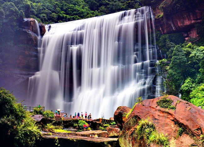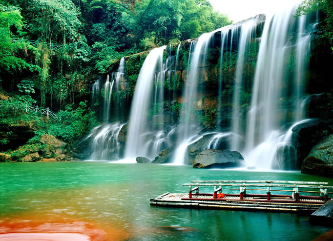早餐后前往當(dāng)?shù)厣鐣?huì)商品零售企業(yè)自由活動(dòng)并領(lǐng)精美紀(jì)念品,名特產(chǎn)品(較為著名云上赤水泰和乳膠、逸可瑞斯乳膠等,主要銷(xiāo)售乳膠制品),自由活動(dòng)后前往【赤水大瀑布】欣賞美譽(yù)中國(guó)的簾狀瀑布典型代表中洞瀑布。觀(guān)氣勢(shì)恢弘的赤水大瀑布(寬81米,高76米),是亞洲最大的瀑布,也是“世界丹霞第一瀑”,瀑水從懸崖絕壁傾瀉而下,猶如萬(wàn)馬奔騰,聲如雷鳴,水霧彌漫,陽(yáng)光下時(shí)見(jiàn)彩虹繽紛,在特定的觀(guān)景石上,奇妙的佛光環(huán)隨人移動(dòng),一人一環(huán),美不勝收。自由活動(dòng)后乘車(chē)前往【白馬溪景區(qū)】(此景點(diǎn)為旅行社贈(zèng)送景點(diǎn),若時(shí)間緊湊無(wú)法前往請(qǐng)各位旅客諒解,贈(zèng)送景點(diǎn)不予置換或退費(fèi)),(白馬溪景區(qū)內(nèi)有玻璃橋、旱滑道等娛樂(lè)項(xiàng)目,客人可根據(jù)自身情況自愿選擇自己喜歡的項(xiàng)目參加,報(bào)價(jià)不含娛樂(lè)項(xiàng)目)赤水白馬溪景區(qū)是赤水唯一家主題景區(qū),景區(qū)集有赤水旅游的5大旅游元素;瀑布景觀(guān)、丹霞景觀(guān)、竹林景觀(guān)、石斛觀(guān)光、以及活化石桫欏樹(shù)。景區(qū)原生植被繁茂,景色怡人,環(huán)境絕佳。是旅游觀(guān)光的絕佳勝地,晚餐可自費(fèi)品嘗(苗家風(fēng)情晚會(huì)120元/人),同時(shí)觀(guān)賞苗家印象激情互動(dòng)篝火晚會(huì),或自由活動(dòng)。酒店休息。