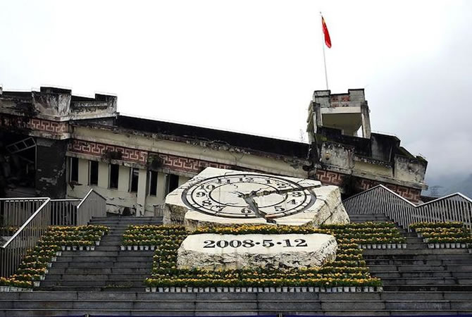 參觀拍照后前往漢旺地震遺址,在汶川地震中,綿竹遭受了巨大災(zāi)難,尤其是漢旺地區(qū)的沿山地區(qū)和山區(qū),房屋幾乎全部坍塌,基本完好的房屋僅占8%左右。地處漢旺的東方汽輪機(jī)廠損失慘重。后將其改建成遺址紀(jì)念區(qū),可看到綿竹漢旺鎮(zhèn)、沿山鄉(xiāng)村旅游地震遺址帶,世界最大板房臨時(shí)安置區(qū),在漢旺地震遺址區(qū)的“512紀(jì)念鐘”前見證歷史。